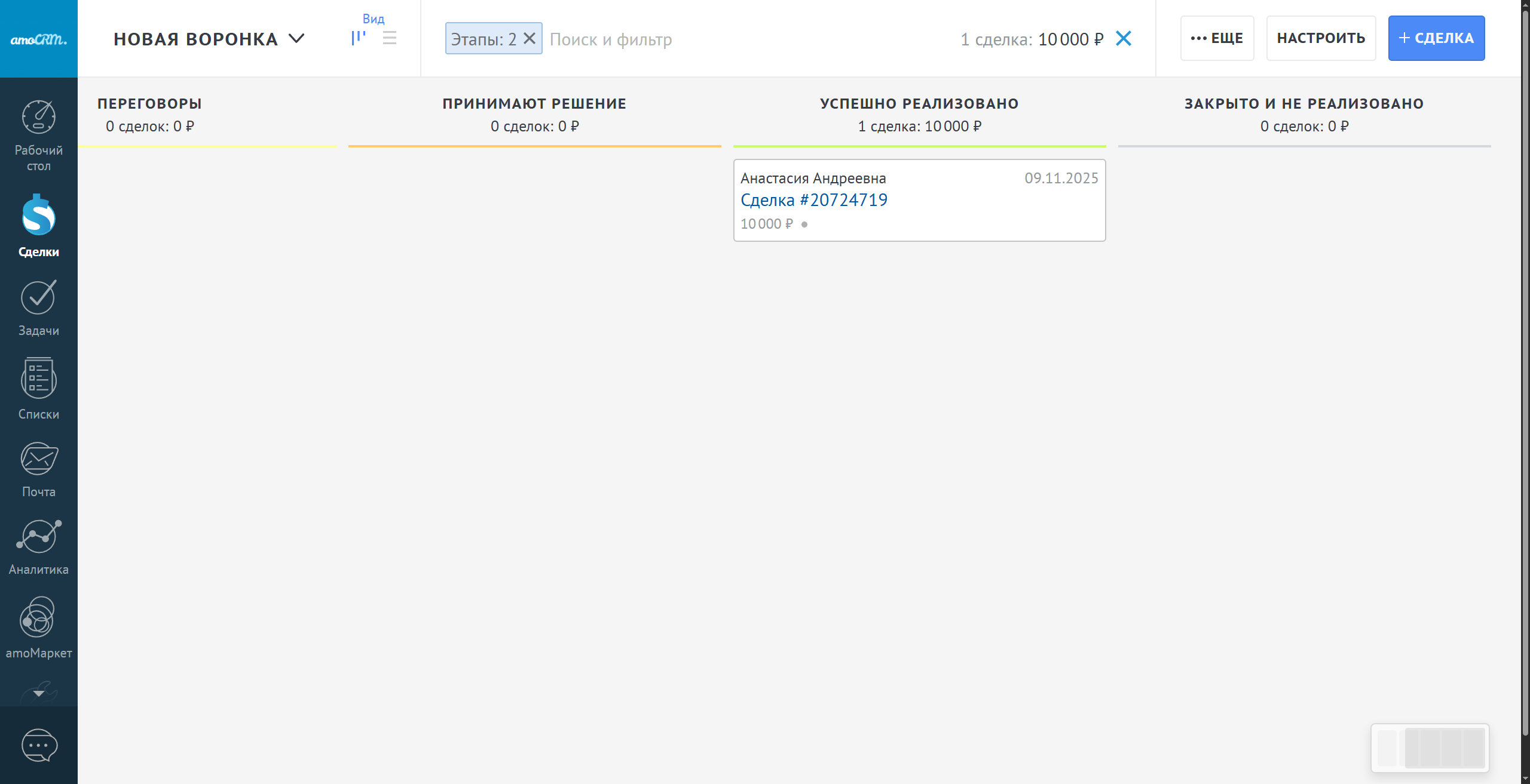 Вы можете создать несколько воронок, для этого нужно перейти в настройки воронки и кликнуть на название воронки в левом верхнем углу. У вас откроется список воронок с возможностью добавления новых и редактированием названий существующих.