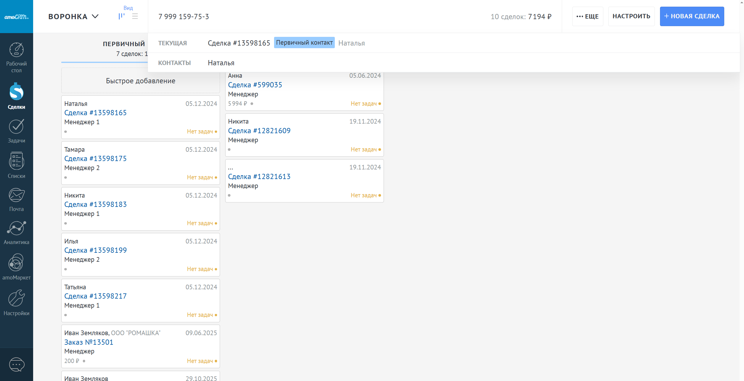 В системе запоминается последняя выбранная воронка и вид отображения сделок при переходе в другие разделы и обратно: